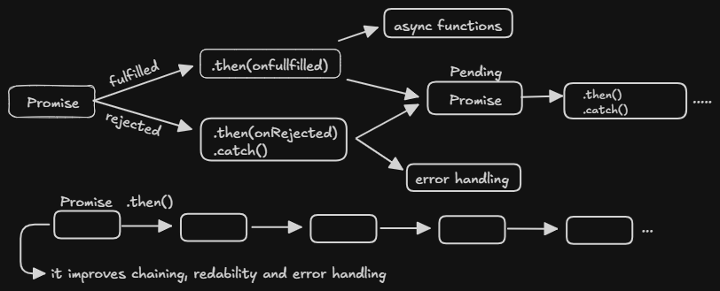 A promise is said to be settled if it is either fulfilled or rejected (not pending). There is no race conditions between them and You can attach handlers to promises using the .then() method. Promises can also be chained, so one promise can depend on the result of another.